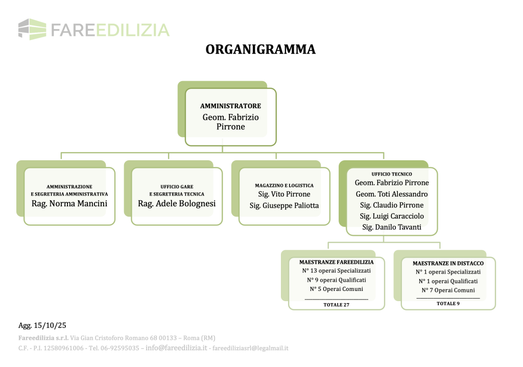 La Fareedilizia S.r.l. inoltre è in grado di fornire servizi di manutenzione programmata, ordinaria e straordinaria, disponendo di squadre pronte ad operare in breve tempo per far fronte a qualsiasi emergenza nel campo edile e impiantistico.